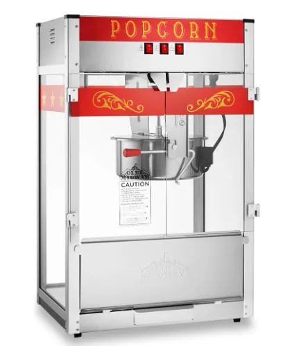 Stainless steel accessories included: Popcorn machine is paired with a 1/2 cup measuring cup, tablespoon, popcorn scoop, and salt shaker.